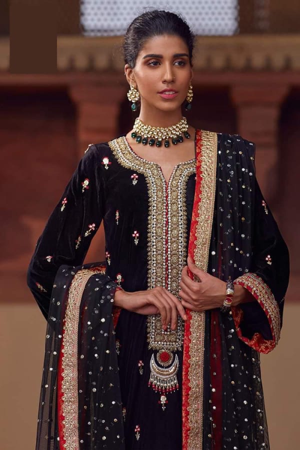 Anus Abrar velvet embroidery suit net embroidery duppata